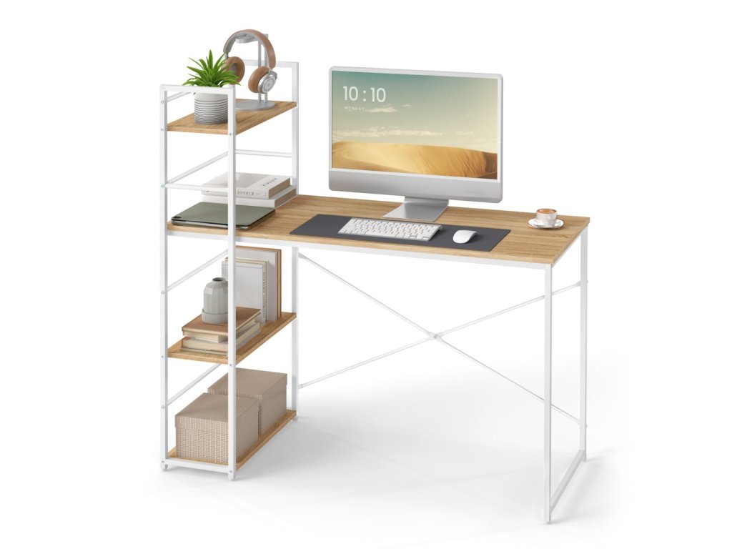 Písací stôl MAX 4.0 SONOMA s regálom a bielymi nohami 120x44 cm