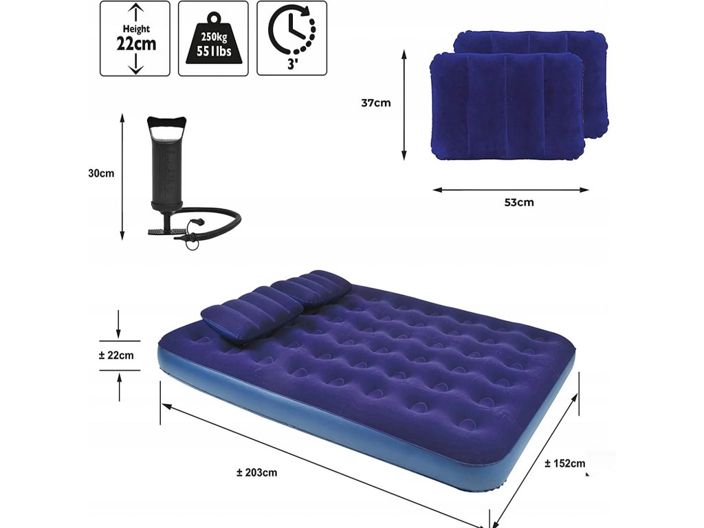 Nafukovací matrac pre dve osoby 203 x 152 cm s 2 vankúšmi