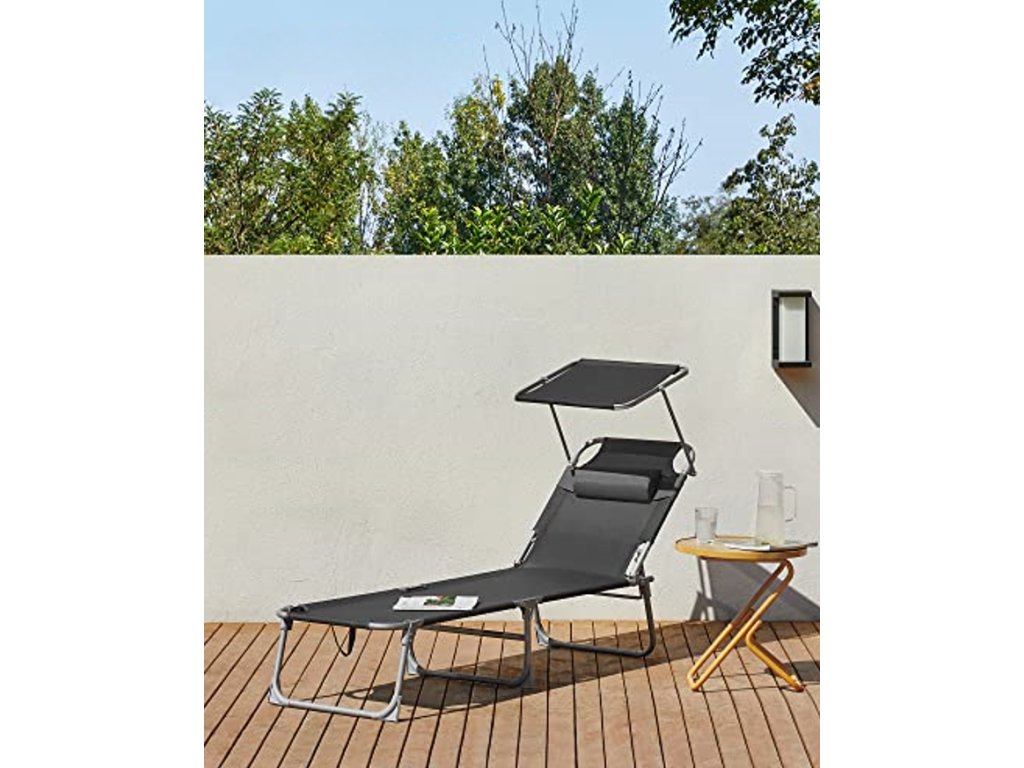Tmavosivé polohovacie ležadlo DESCANSO so slnečnou clonou
