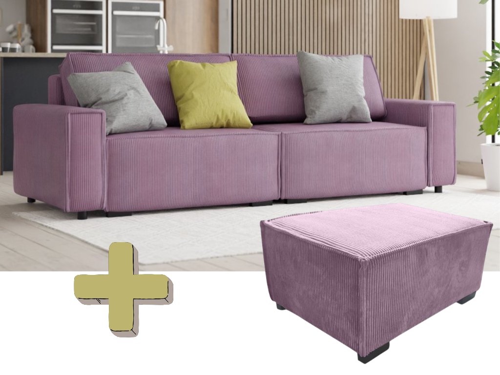 Rozkladacia trojmiestna pohovka s taburetom SMART SET, lila LINCOLN 63