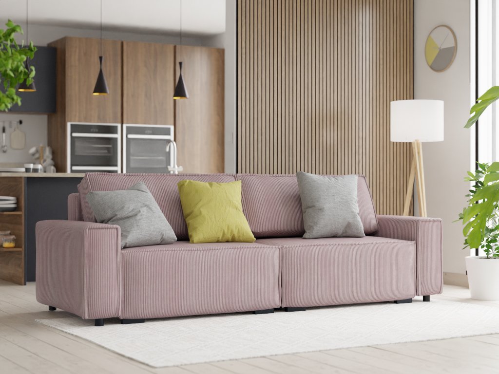 Trojmiestna pohovka s taburetom SMART SET, svetlo ružová