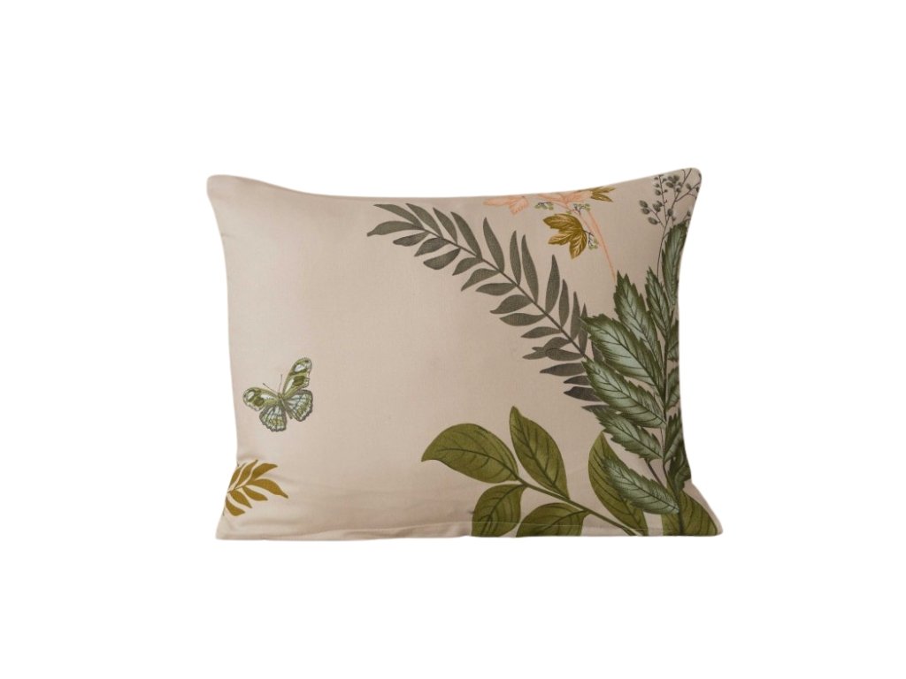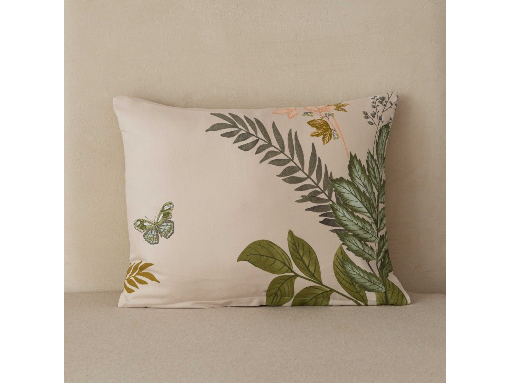 Flanelová obliečka na vankúš ORVILA v rozmere 40 x 50 cm pôsobí jemne a prírodne vďaka béžovému podkladu s motívom zelených listov a motýľa. Tento detailný vzor dodáva obliečke svieži a romantický vzhľad, ktorý rozžiari každý interiér.