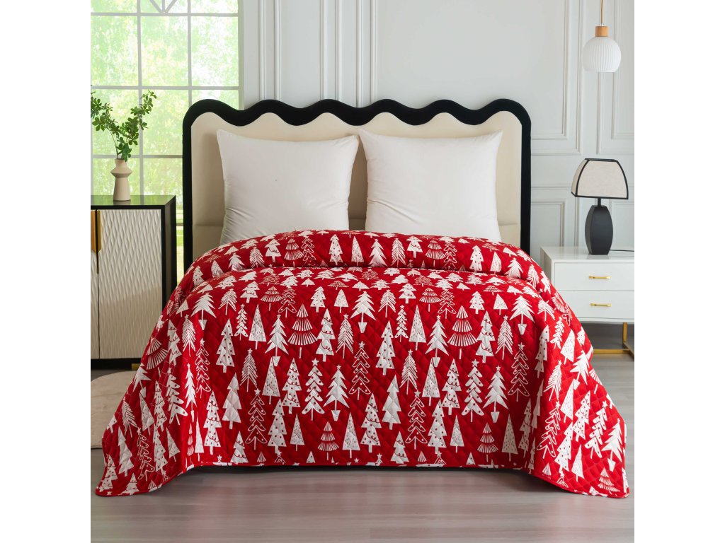 Červený prehoz na posteľ CHRISTMAS TREES