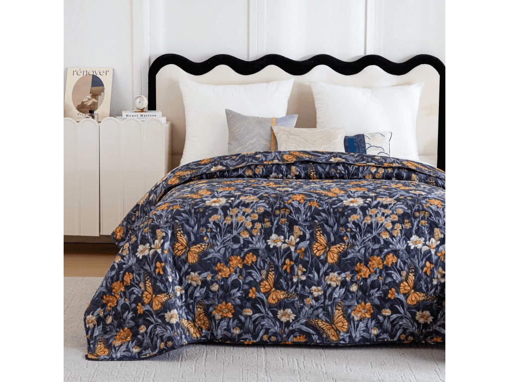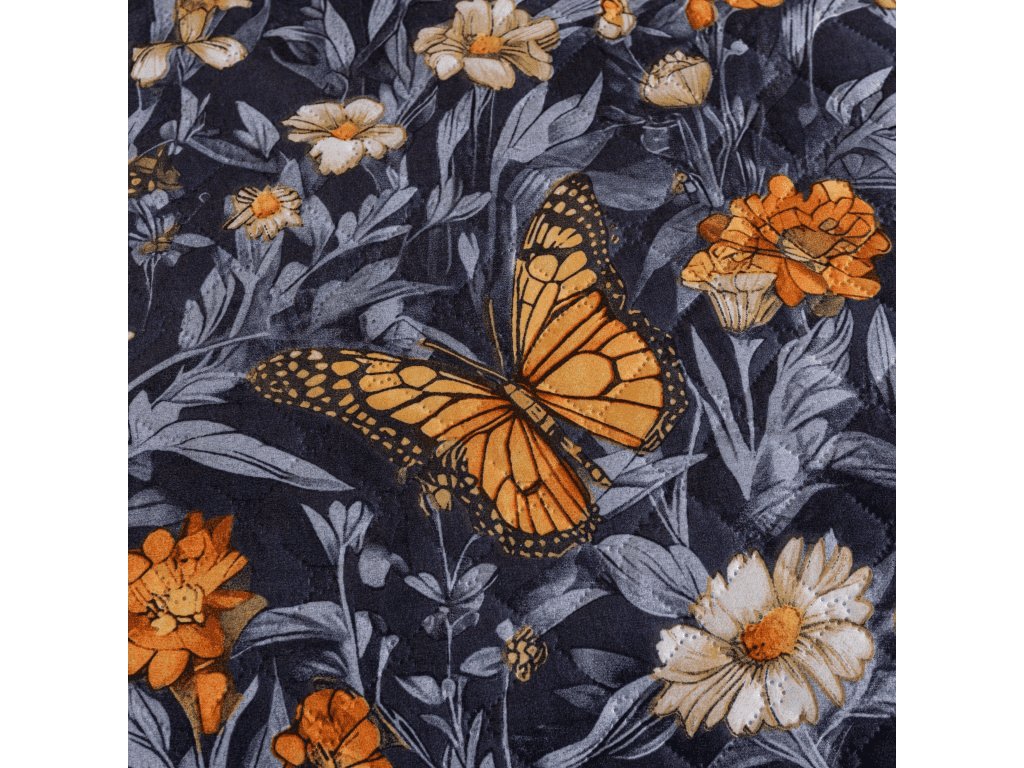 Prehoz na posteľ BUTTERFLY GARDEN modrosivý
