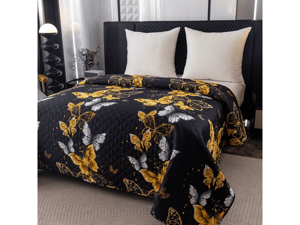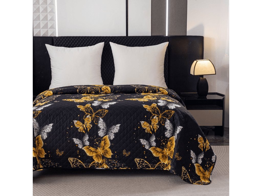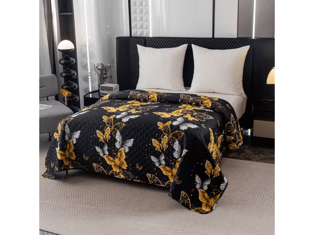 Prehoz na posteľ GOLD BUTTERFLY čierny