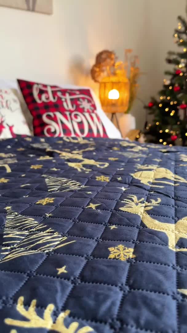 Prehoz na posteľ GOLDEN DEER tmavomodrý