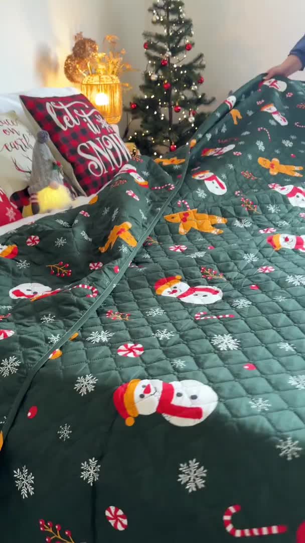 Prehoz na posteľ SNOWMAN AND GINGERBREAD, zelený
