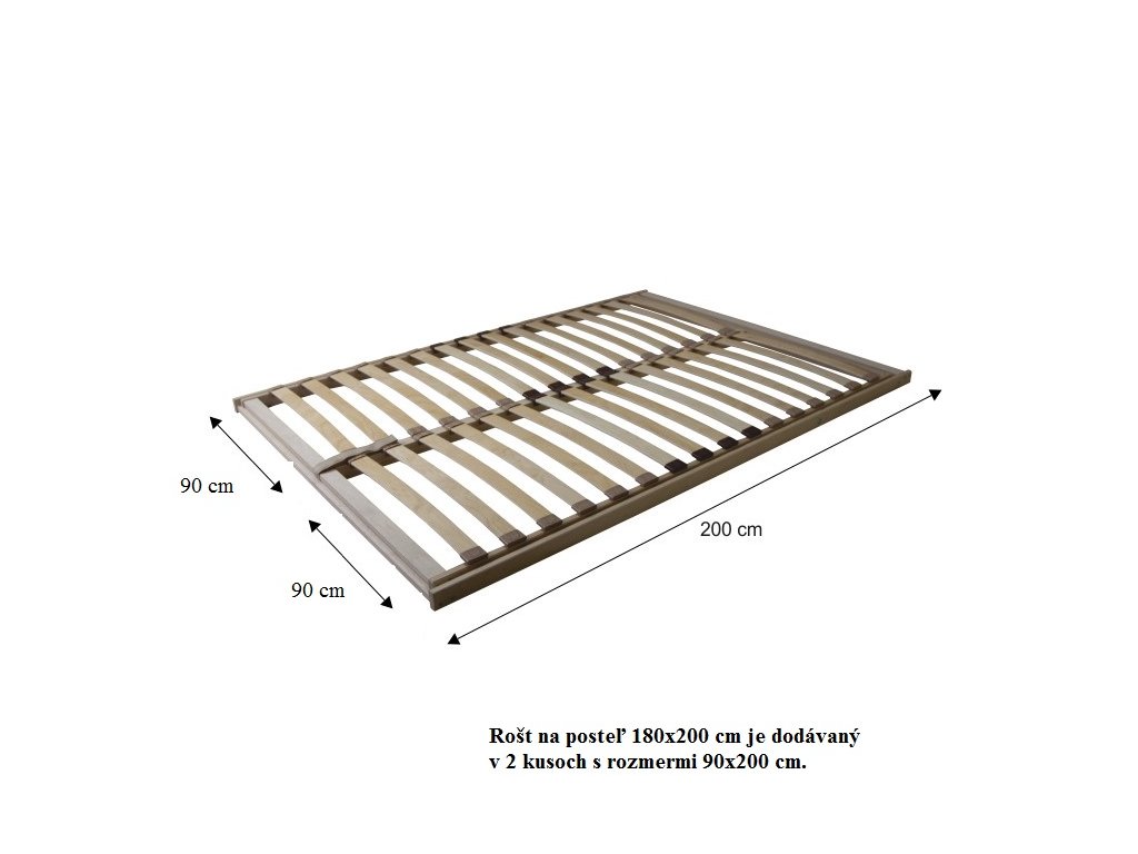 - Rošt pri rozmere 160 x 200 cm a 180 x 200 cm je možné kúpiť len k posteli so stredovou deliaciou lištou