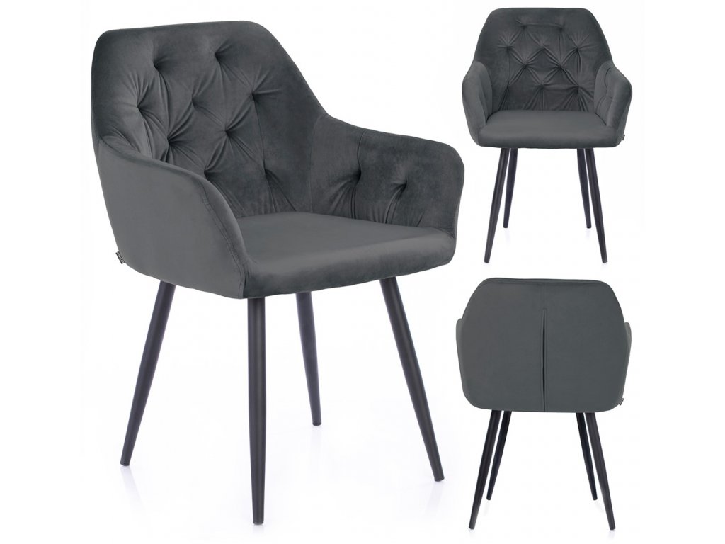 Tmavosivé zamatové jedálenské kreslo ARGENTO
