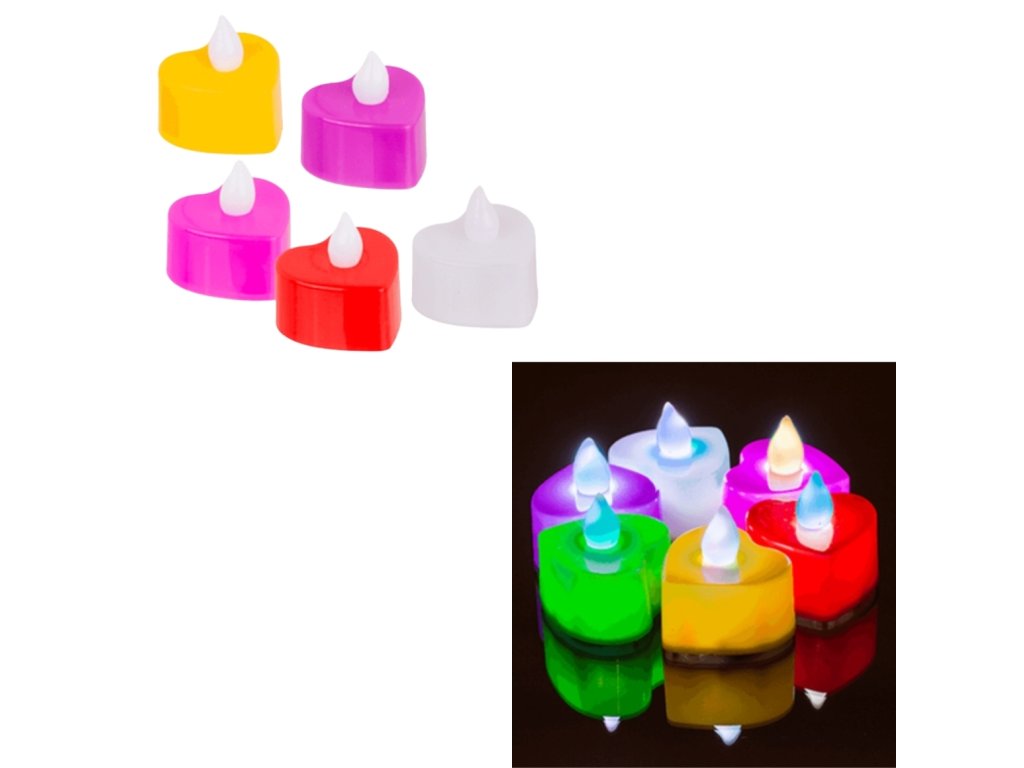 LED čajové sviečky v tvare srdca HEARTS, sada 6 ks