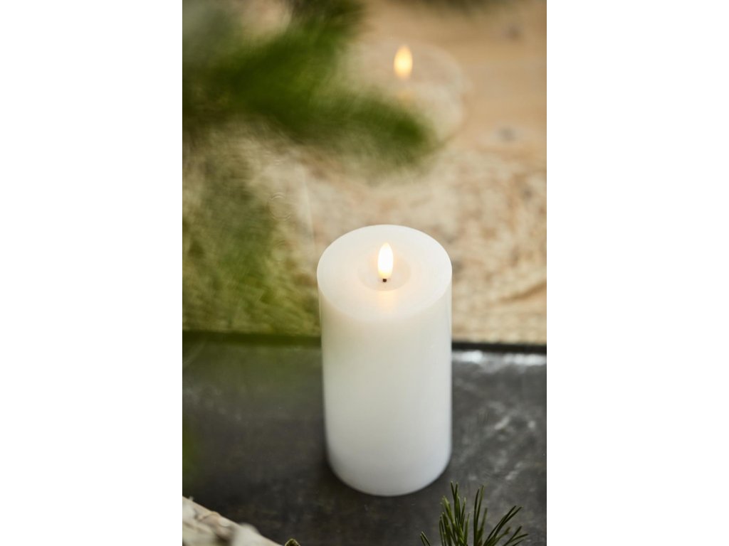 LED stĺpová sviečka WARM FLAME SL 12,5 cm biela