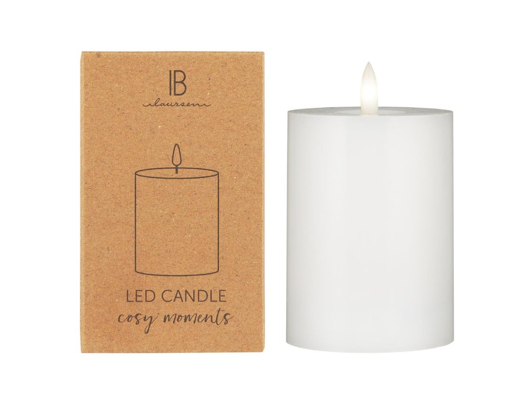 LED stĺpová sviečka WARM FLAME SL 15 cm biela