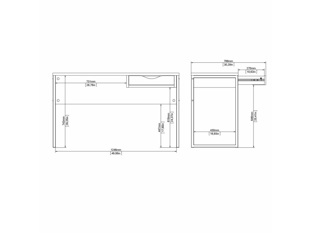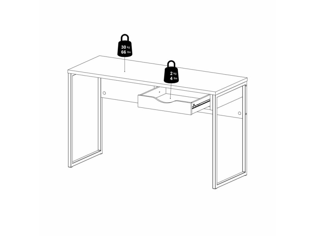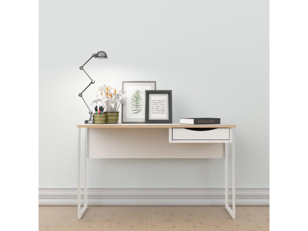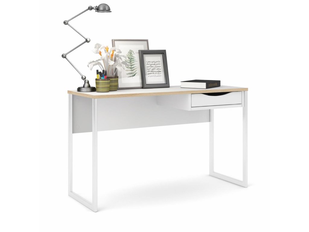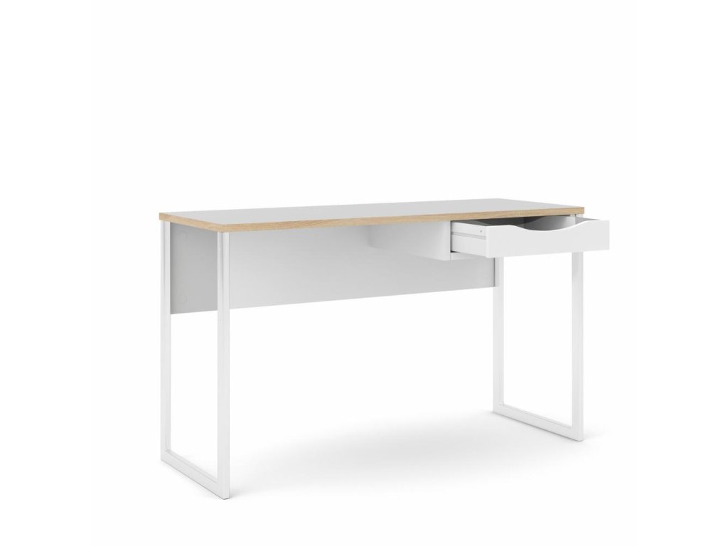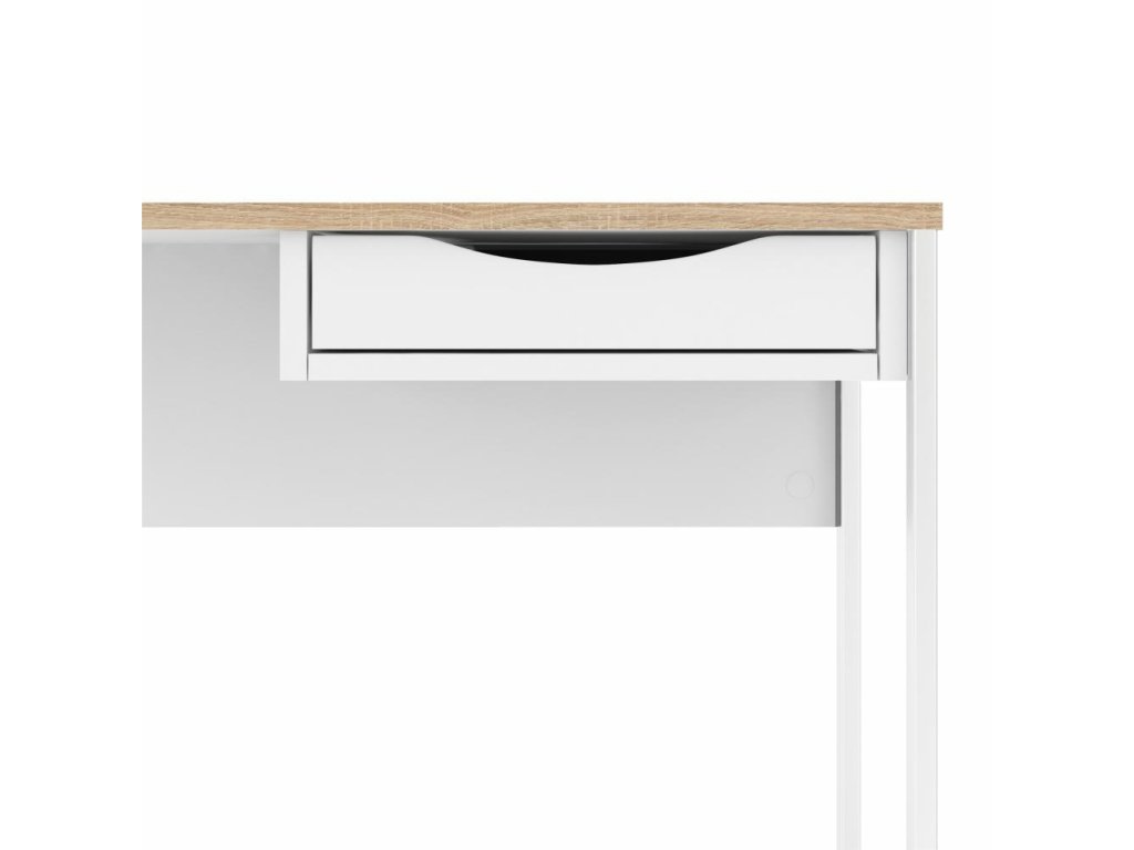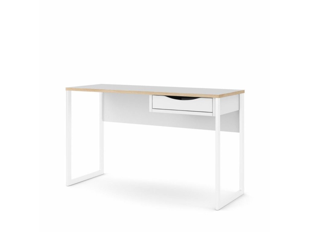 Biely písací stôl EFREM PLUS 512 s 1 zásuvkou a doskou v dekore dub