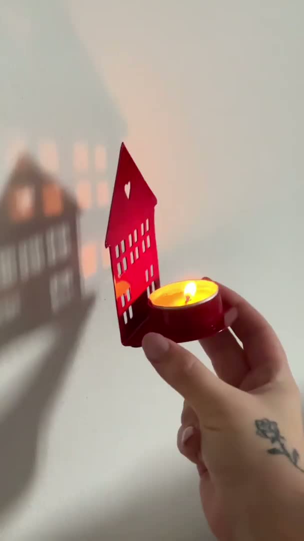 Sviečnik na čajové sviečky TEALIGHT HOUSE FACADE, červený
