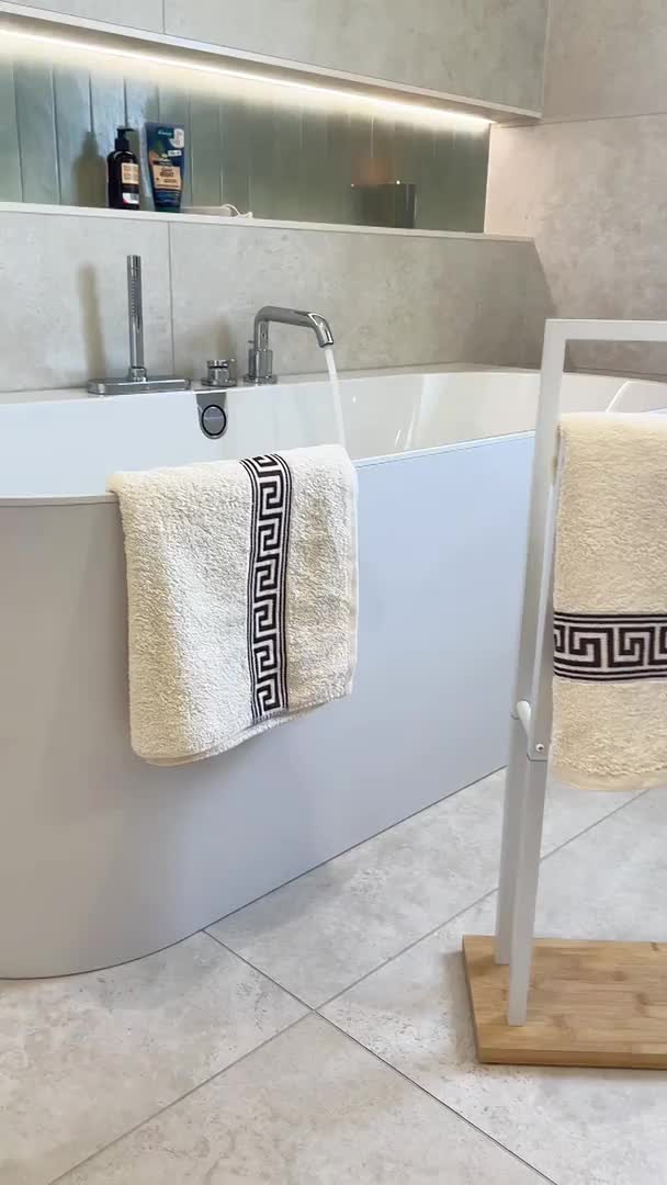 Vytvorte si aj vy prírodný interiér v krémovom odtieni, ten vnese do vašej kúpeľne rovnováhu a pokoj. Nádych vidieka a istú dávku elegancie sa vám podarí vykúzliť s krémovými uterákmi. Tie ľahko zladíte s elementmi v zemitých tónoch.
