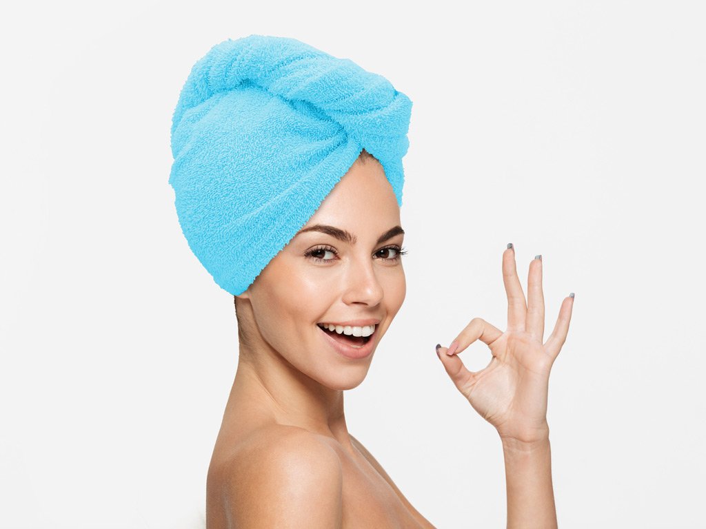 Rýchloschnúci froté turban na vlasy tyrkysový, 100% bavlna