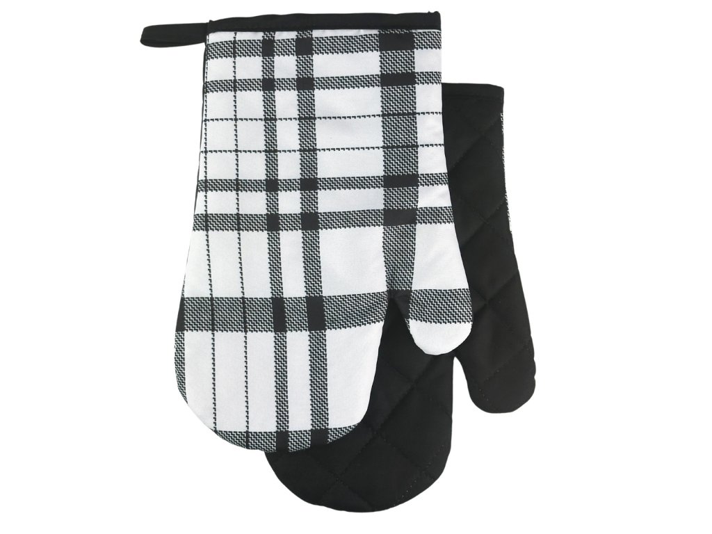 Sada 2 kuchynských chňapiek s magnetom CHECKS, bielo-čierna