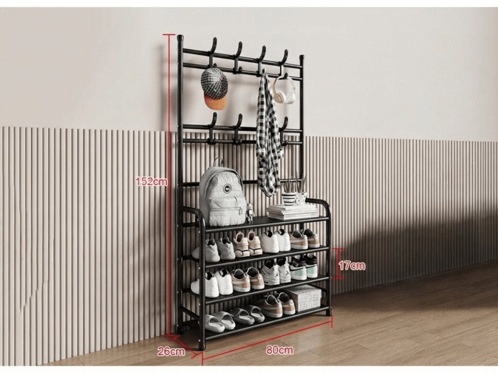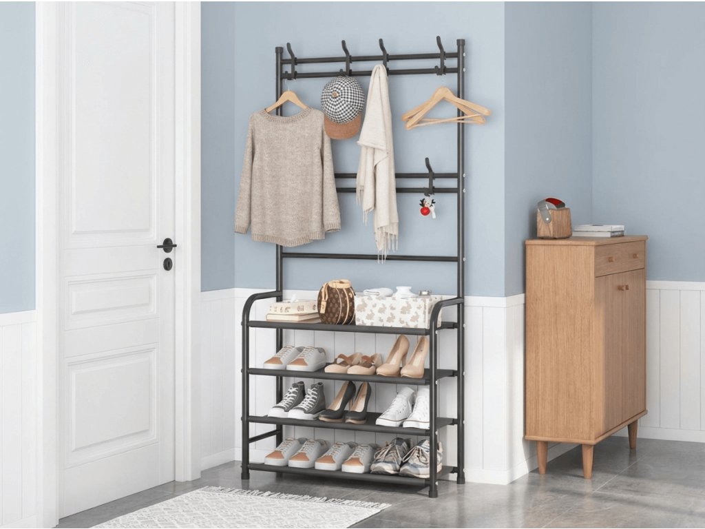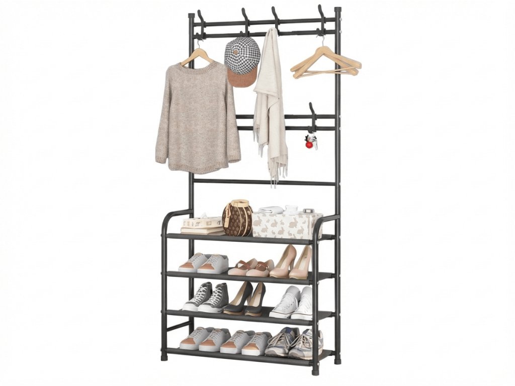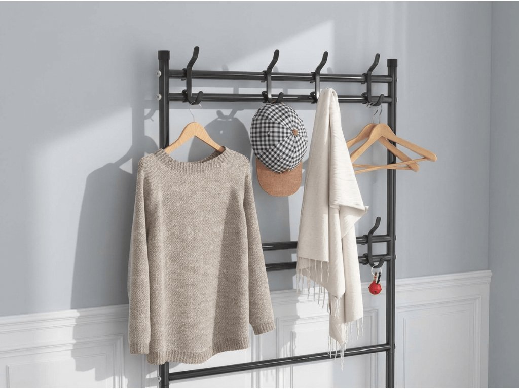 Vešiak s botníkom CLOTHORY 80x152 cm, čierny