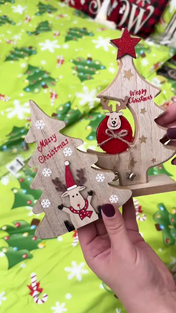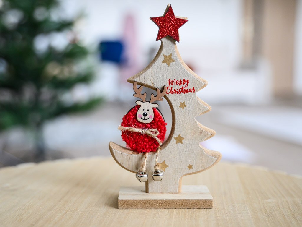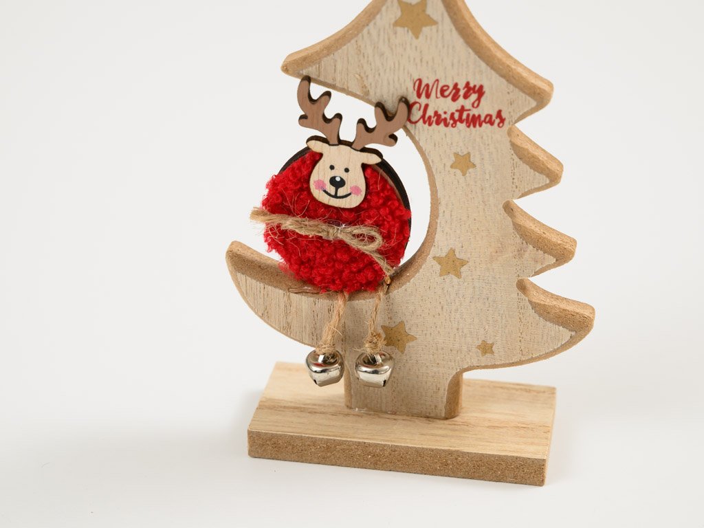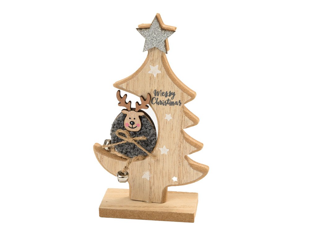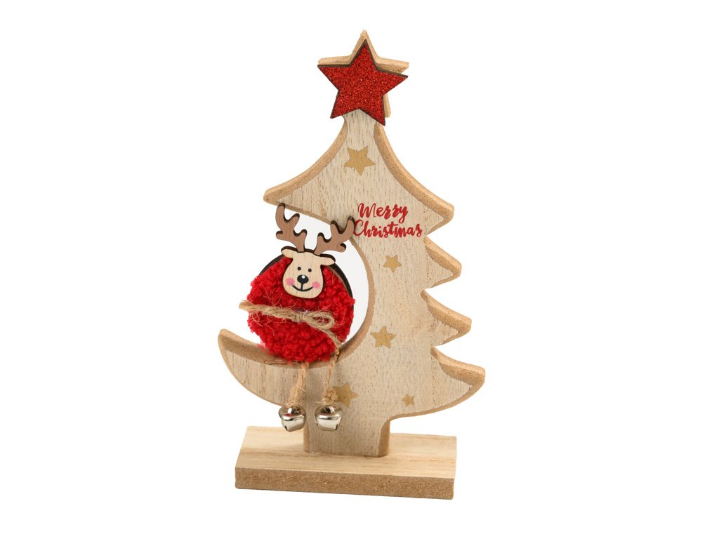 Dekoračný vianočný stromček so sobom XL 18 cm drevený