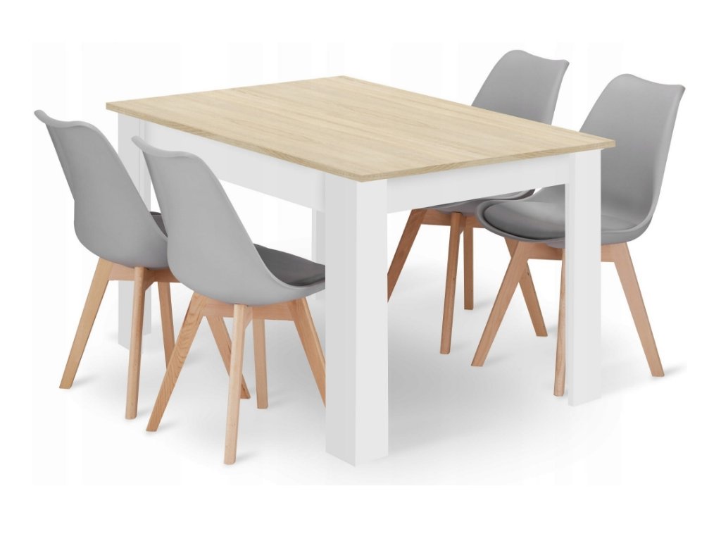 Jedálenský set 1+4, stôl MADO 120x80 biely + stolička BALI MARK sivá