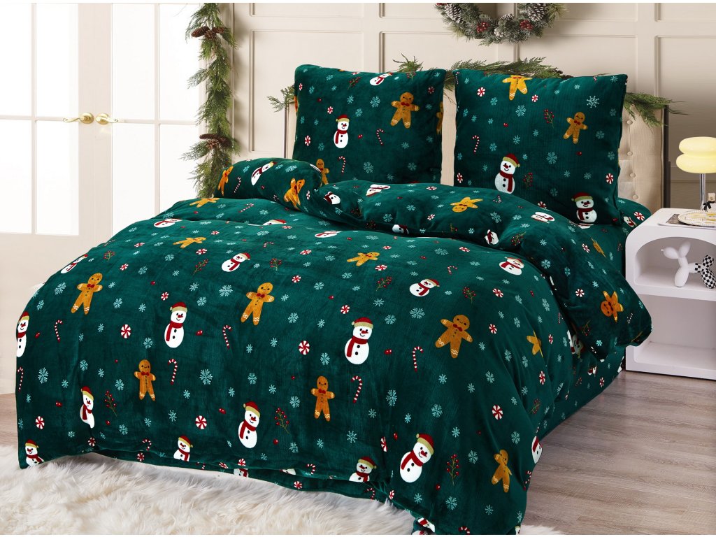 Sada mikroplyšových obliečok SNOWMAN AND GINGERBREAD zelené + obliečka mikroplyš SOFT 90x200 cm biele, jednolôžko