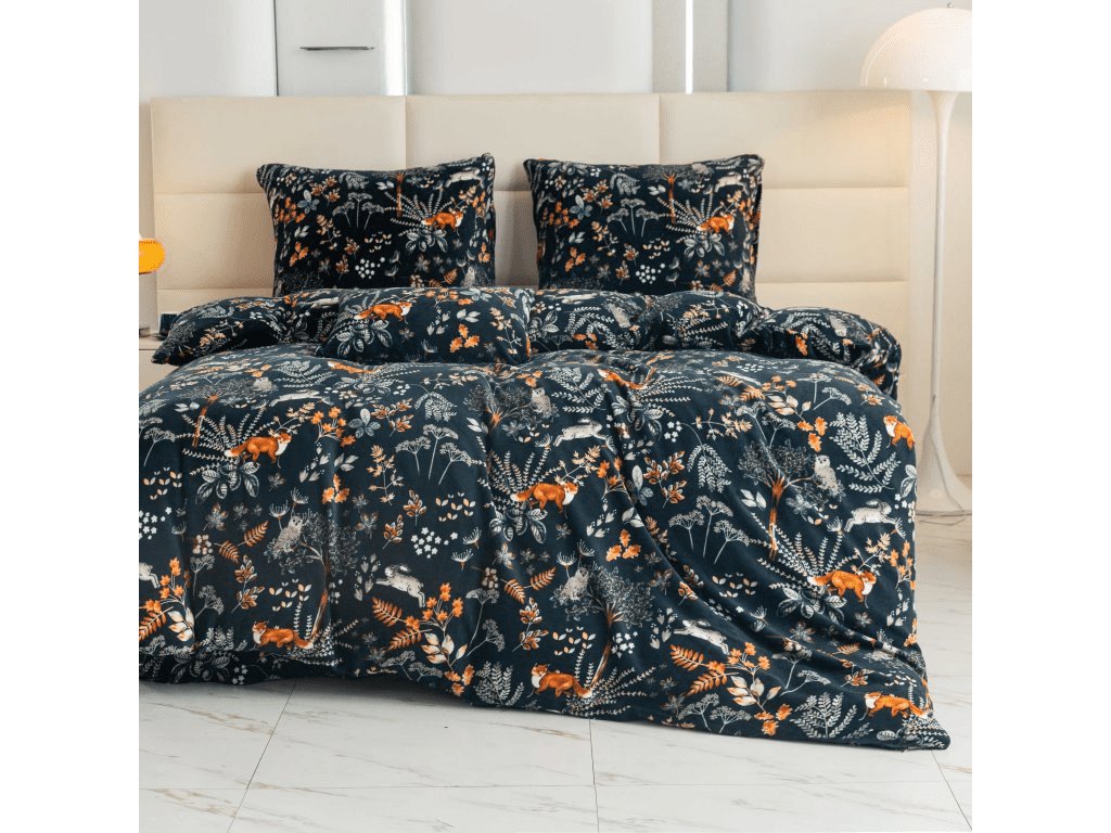 Súprava mikroplyšových obliečok THE FOX AND THE HARE tmavozelené + obliečka mikroplyš SOFT 90x200 cm biele, jednolôžko