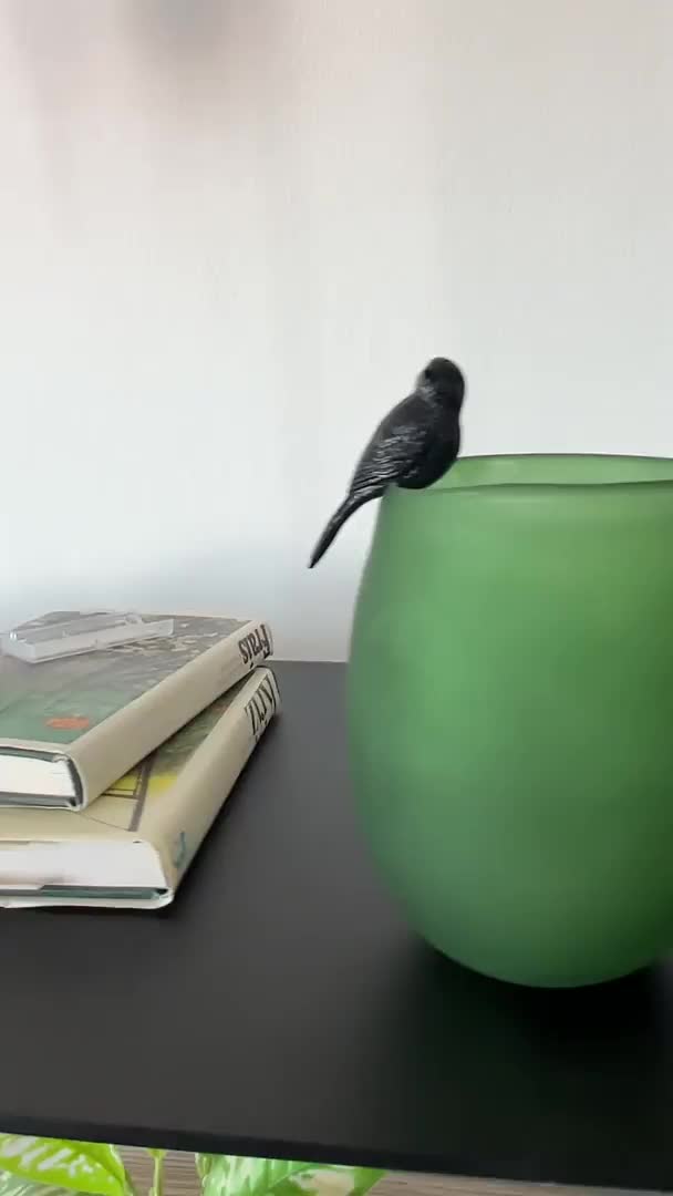 - Okraj v spodnej časti umožňuje umiestniť vtáčika na okraj pohára alebo kvetináča na ozdobu