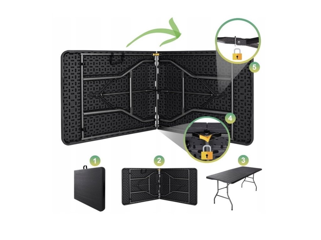 - Po zložení tvorí stôl praktický kufor, vďaka čomu zaberá málo miesta a je ľahko prenosný