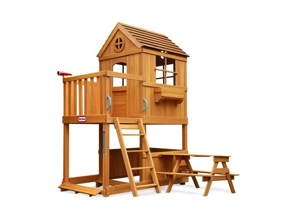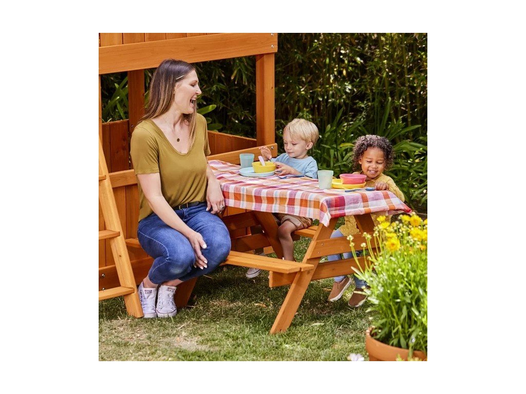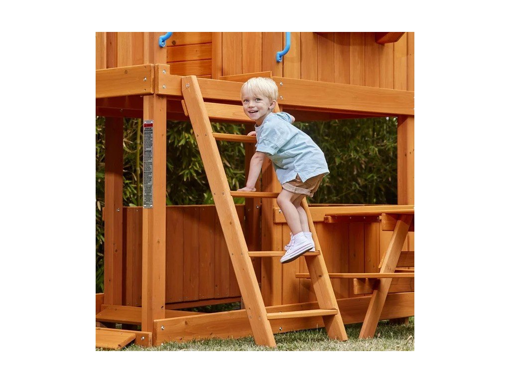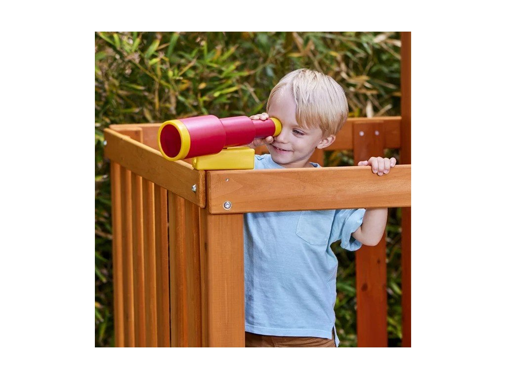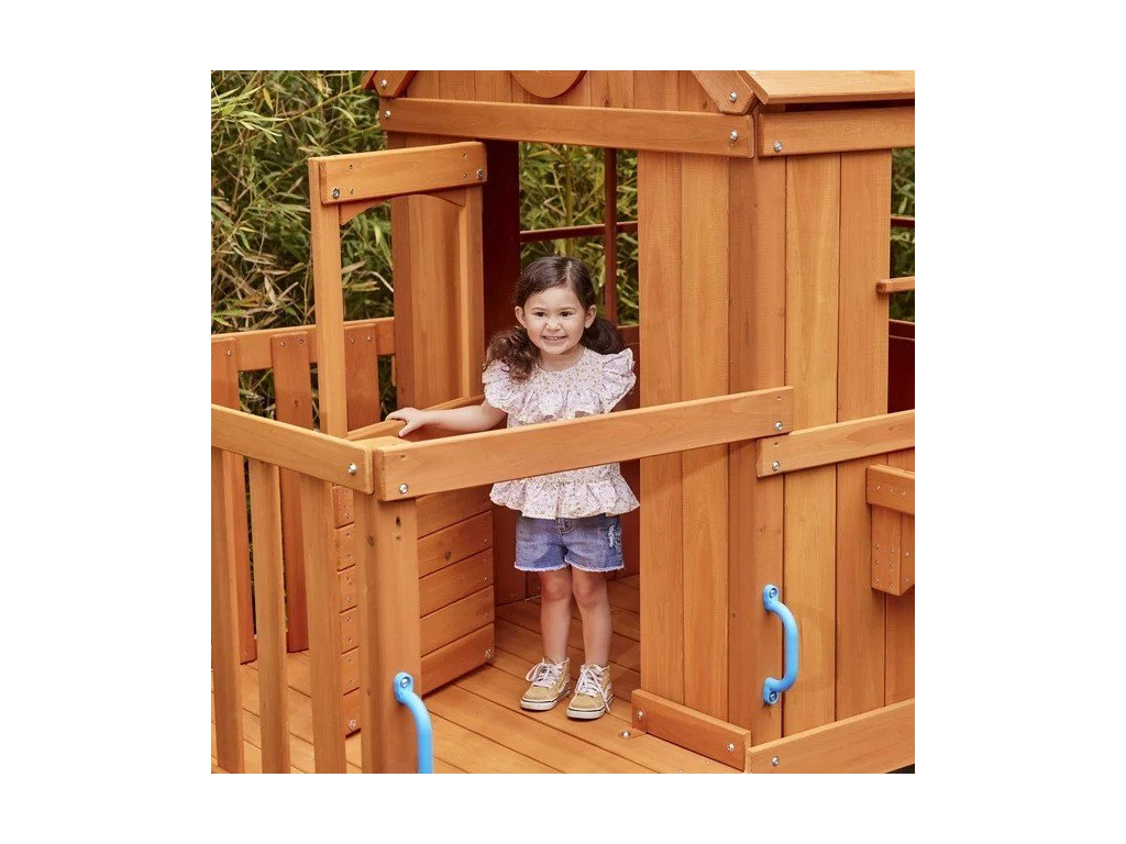 Všetky hracie zostavy na záhradu sú vyrobené tak, aby odolali vonkajším poveternostným podmienkam. Všetky súčasti sú odolné aj voči bežným klimatickým podmienkam, čo z tejto hracej zostavy pre deti na dvorček robí dokonalé vonkajšie ihrisko.