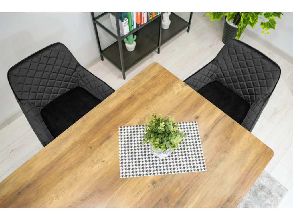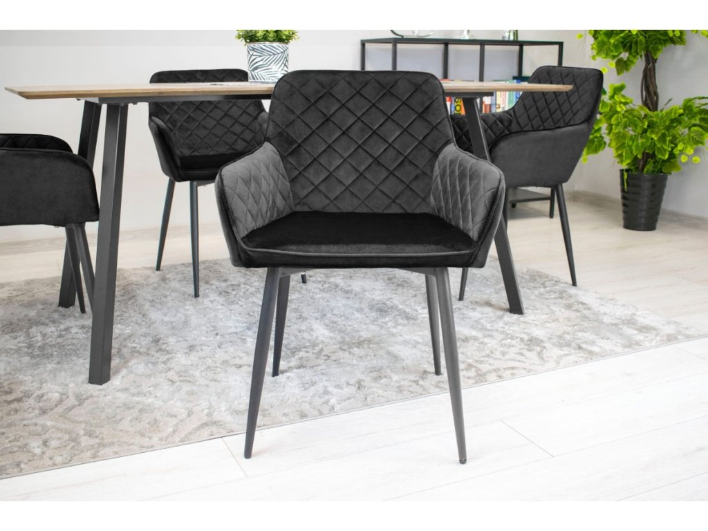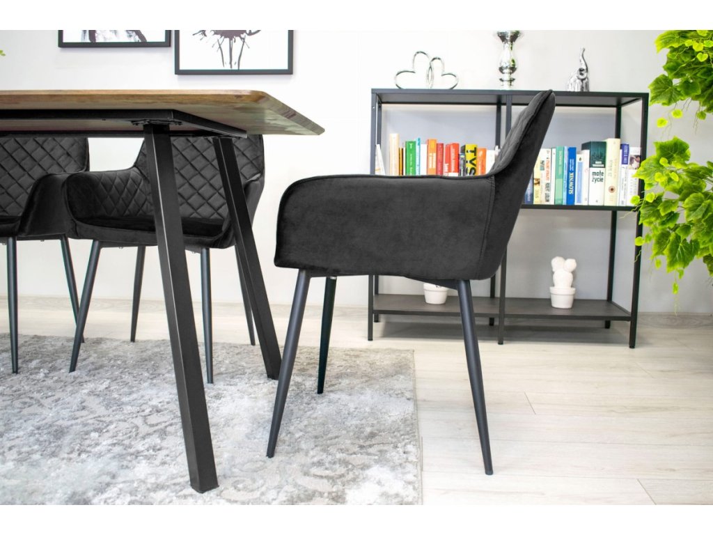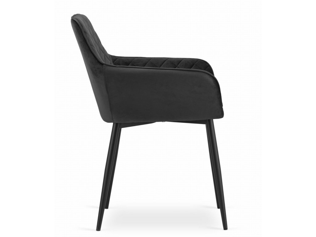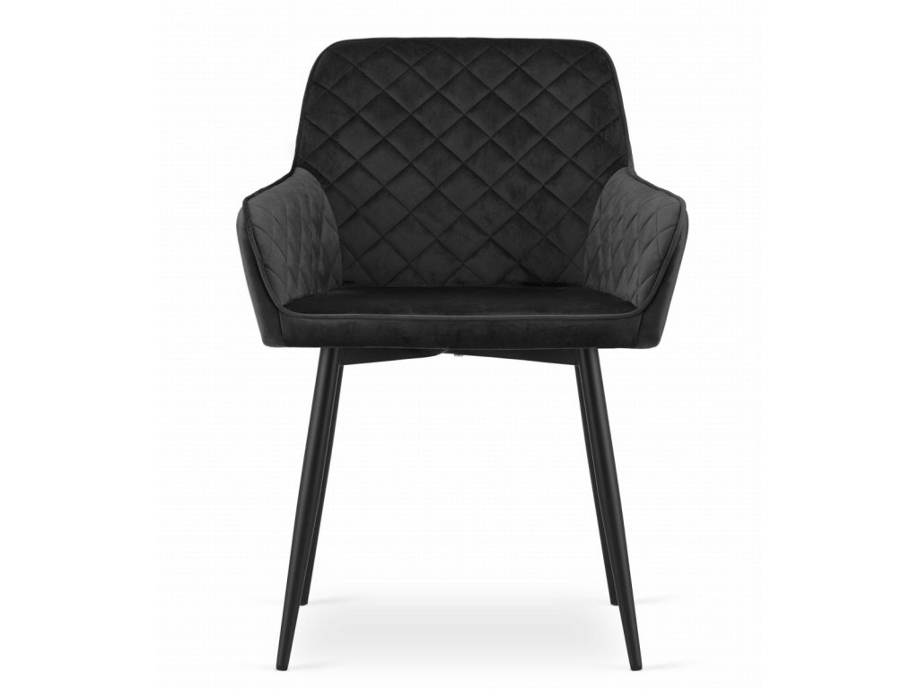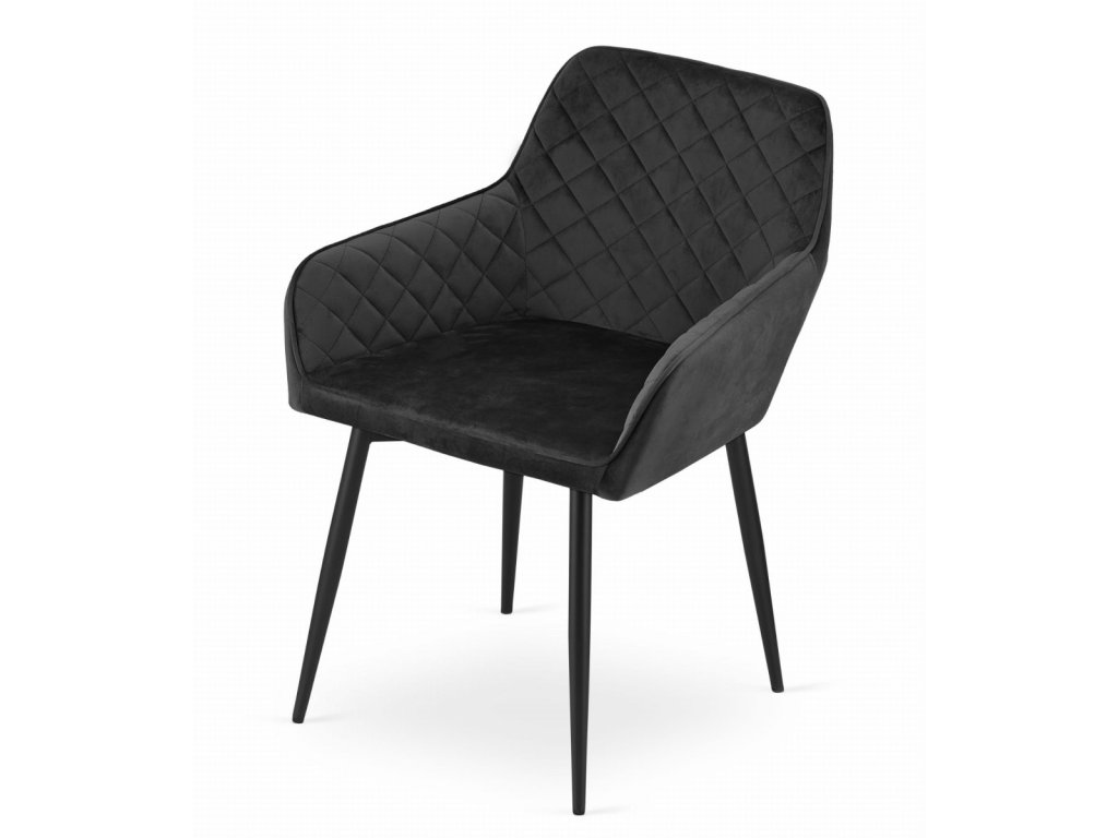 Elegantná čierna zamatová stolička NOLA je dokonalou kombináciou moderného dizajnu a komfortu. Vďaka zamatovému čalúneniu a prešívanému vzoru na operadle ponúka nielen pohodlné sedenie, ale aj luxusný vzhľad, ktorý zaujme na prvý pohľad. Stabilitu a pevnosť zabezpečujú čierne kovové nohy, ktoré skvele ladia s celkovým vyhotovením.