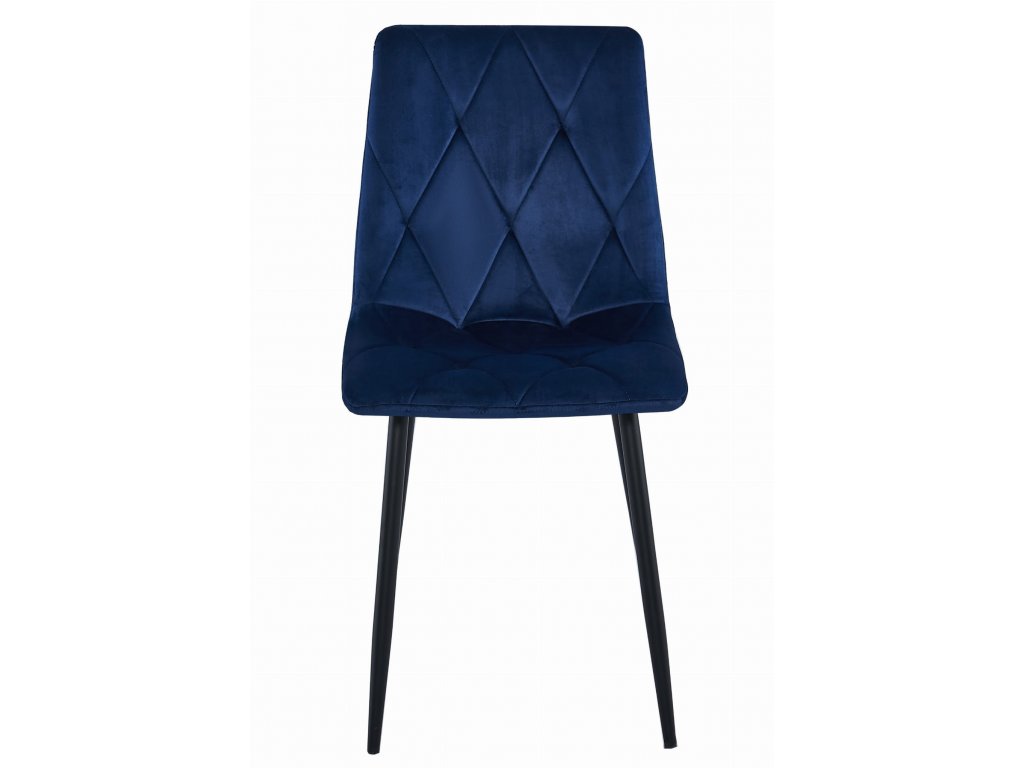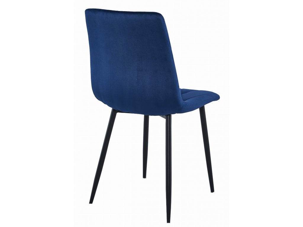 Modrá zamatová jedálenská stolička LIBRA s čiernymi nohami