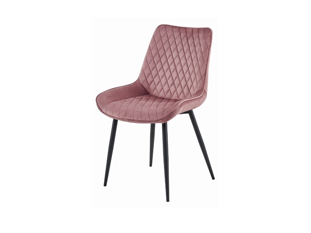 Ružová zamatová stolička VERDO s čiernymi nohami