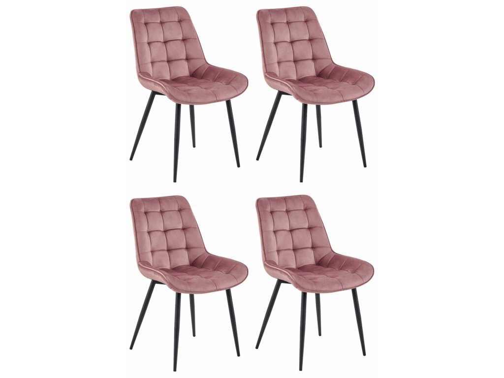 Tmavoružová zamatová stolička BERA s čiernymi nohami