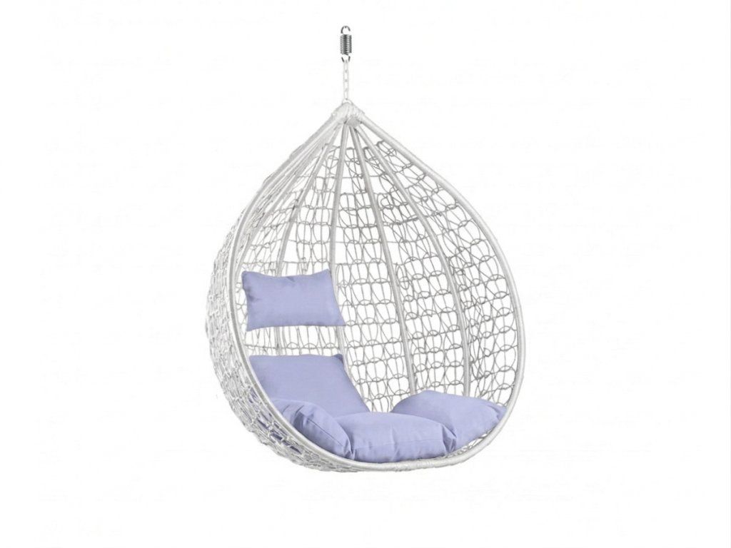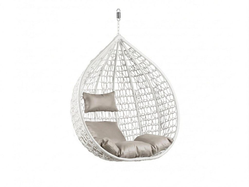 Biele závesné kreslo KOKON bez stojanu, svetlý vankúš