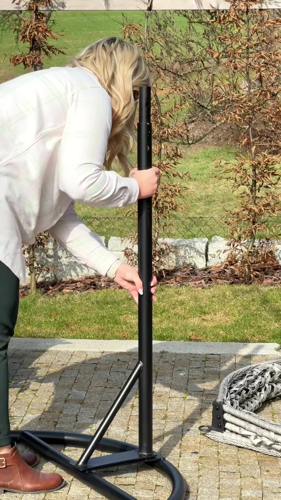 - Pokiaľ používate na zavesenie kresla stojan, umiestnite ho na rovný a pevný povrch, kde bude jeho pozícia stabilná (napr. podlaha, vydláždená terasa).